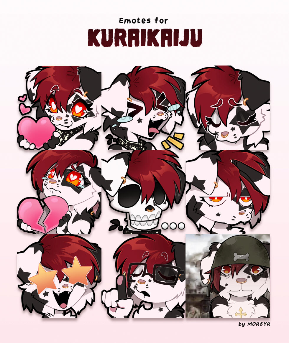 ✦ 25$ per emoteMarkings/features may be simplified. Image will be shrunken to optimized discord emote size (128 x 128px). Original and shrunken file sizes are included. Includes Display sheet.Telegram Stickers